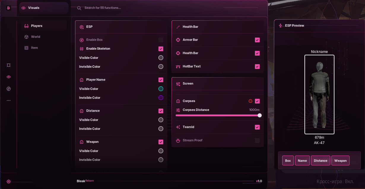 - (Настройка внешнего вида ЕСП игрока, доступна на любой вкладке меню)