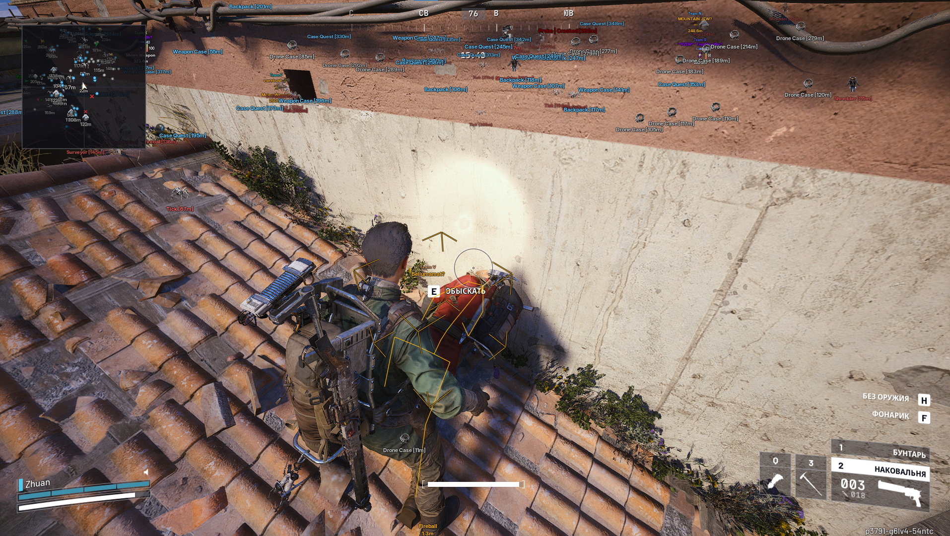 - (Список типов контейнеров: Контейнер дрона, Кейс с оружием, Ящик патронов, Медсумка, Рюкзак, Гранаты, Обычный контейнер, Зонд разбитый/целый, Контейнер рейдера, Квестовый контейнер)