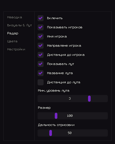 - Показывать лут – Отображает предметы на радаре.